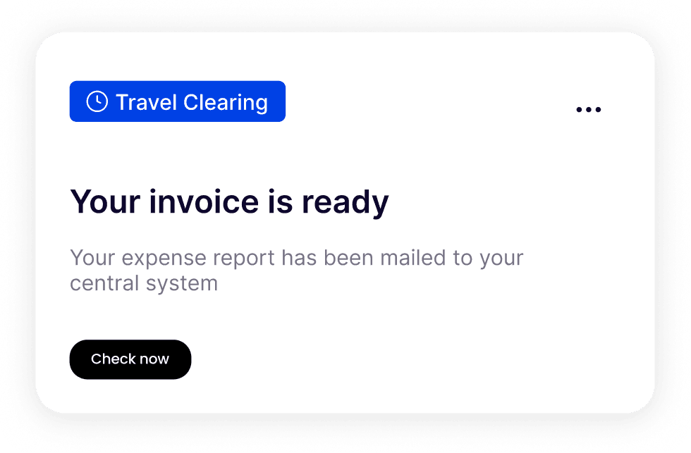 Travel Clearing automates the most time-consuming processes across the entire company. Travelers are rarely required to handle receipts and never use private funds for approved bookings. Finance teams save valuable hours, reduce errors, and gain confidence in every transaction.